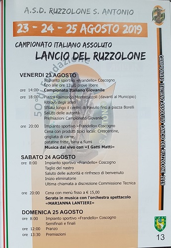 PAVULLO NEL FRIGNANO (MO) – Oltre 600 lanciatori di ruzzolone, provenienti soprattutto dall’Appennino modenese e da diverse province del nord e del centro Italia si sfideranno, da venerdì 23 a domenica 25 agosto, a Pavullo in occasione dei Campionati italiani assoluti categoria; le gare si svolgono a Coscogno nelle piste della località Frandello.
