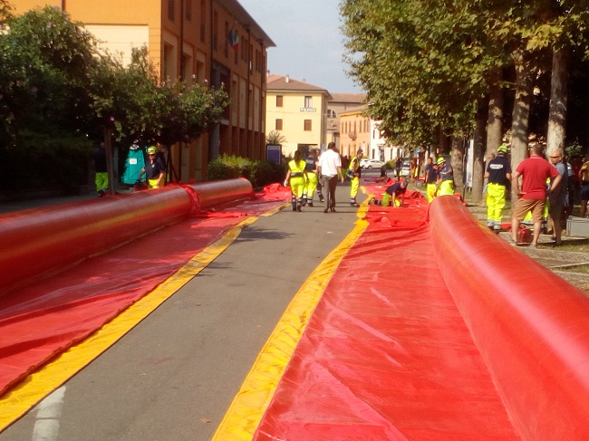 Con il coinvolgimento di circa 40 volontari, coordinati dal responsabile della Protezione civile di Bomporto, Pasquale Lo Fiego, a partire dalle ore 8, saranno installati 33 moduli gonfiabili, per un totale di oltre 500 metri di barriere di protezione, in un tratto compreso tra il semaforo vicino a Villavara, lungo la strada provinciale 2, fino all’argine del Panaro.