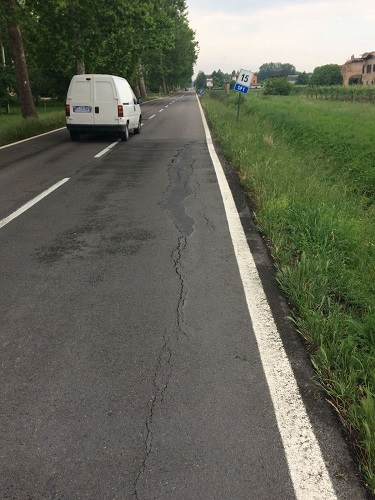 Come spiegano i tecnici del servizio provinciale Viabilità, nel raccomandare la massima prudenza, la natura dei terreni e la scarsità di precipitazioni di questi ultimi mesi hanno accelerato il fenomeno con la comparsa di fessurazioni longitudinali particolarmente pericolose per la circolazione dei mezzi a due ruote; lungo le strade provinciali dell’area nord, negli anni scorsi, si erano verificate situazioni simili, in concomitanza con il caldo estivo.