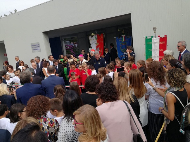 Lo ha affermato Maria Costi, vicepresidente della Provincia di Modena, partecipando, giovedì 13 settembre, a San Severino Marche, in provincia di Macerata, all’inaugurazione, alla quale è intervenuto anche il presidente del Consiglio Giuseppe Conte, della nuova scuola realizzata con i contributi di cittadini ed enti modenesi, pari a quasi 100 mila euro, raccolti dalla Provincia con il conto corrente di solidarietà a favore delle zone dell’Italia centrale colpite dal sisma del 2016; la delegazione modenese era composta anche da Valter Canali, sindaco di Prignano.