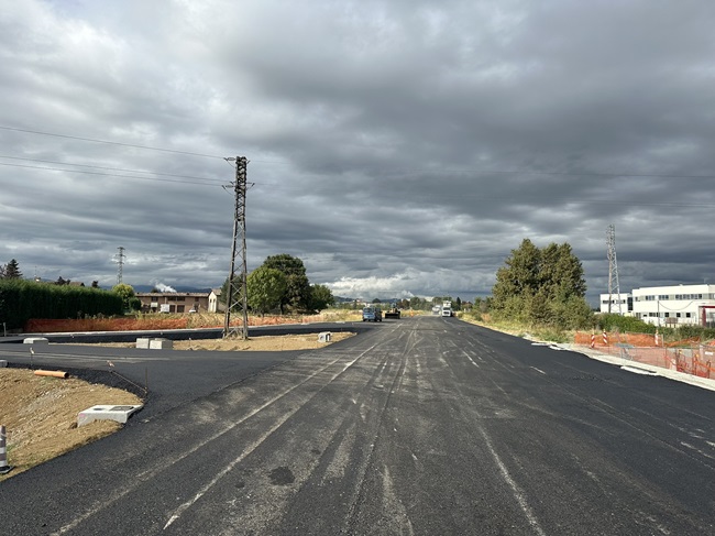 Oltre a gran parte dell’asse viario, sono già stati realizzati un sottopasso pedonale, due sottopassi agricoli, due attraversamenti del rio Scuro e 12 scatolari per la trasparenza idraulica. I rilevati in terra che costituiscono gran parte del tracciato stradale sono interamente completati ed è in corso di realizzazione il pacchetto degli asfalti, oltre alle opere idrauliche, e all’installazione delle barriere guard rail e antirumore.