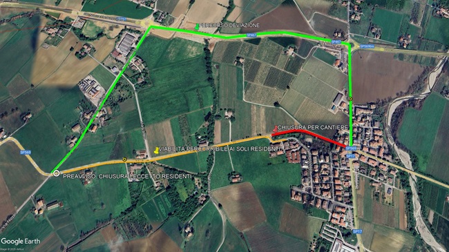 Il traffico proveniente da Solignano con direzione Vignola verrà deviato lungo la Nuova Pedemontana all’intersezione di via Lingua Lunga e ai soli residenti sarà permesso il transito per raggiungere Via della Resistenza, mentre Il traffico proveniente da Vignola con direzione Solignano sarà deviato lungo la Nuova Pedemontana all’intersezione con la strada provinciale 17.
