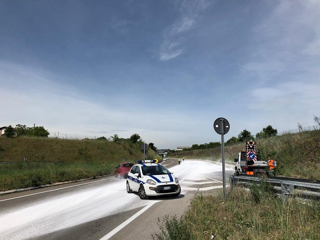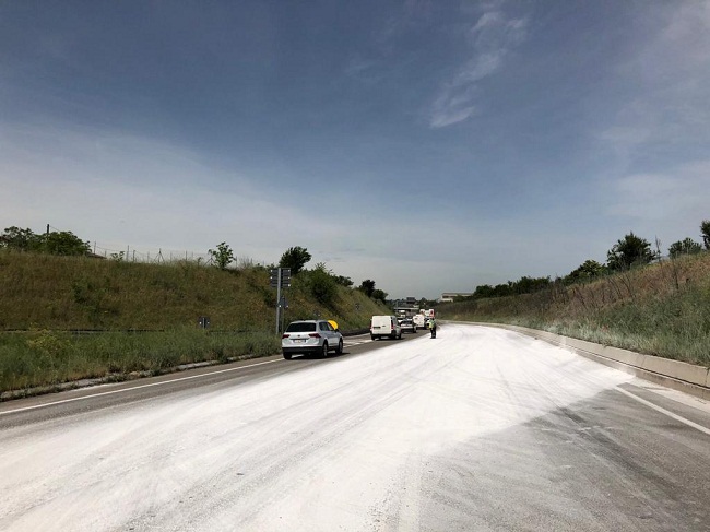 VIGNOLA (MO) – A Vignola, lungo la strada provinciale nuova Pedemontana, un mezzo pesante, nella mattina di martedì 5 maggio, ha perso parte del carico di materiale polveroso per uso ceramico sulla sede stradale, in un tratto all’altezza dello svincolo tra l’arteria e la strada provinciale 623 Vignolese.