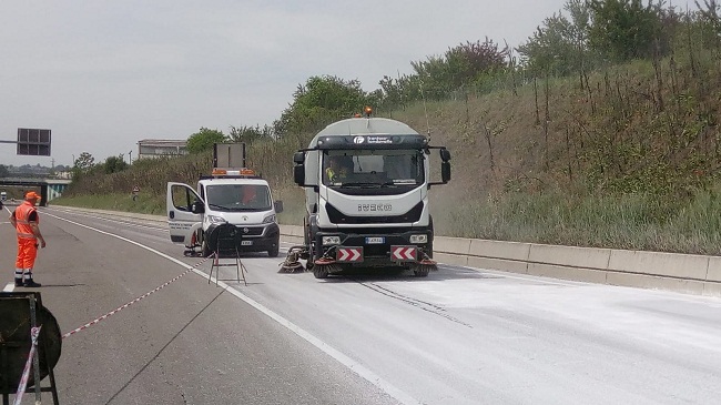 Strada ripulita dopo la perdita del carico di un camion