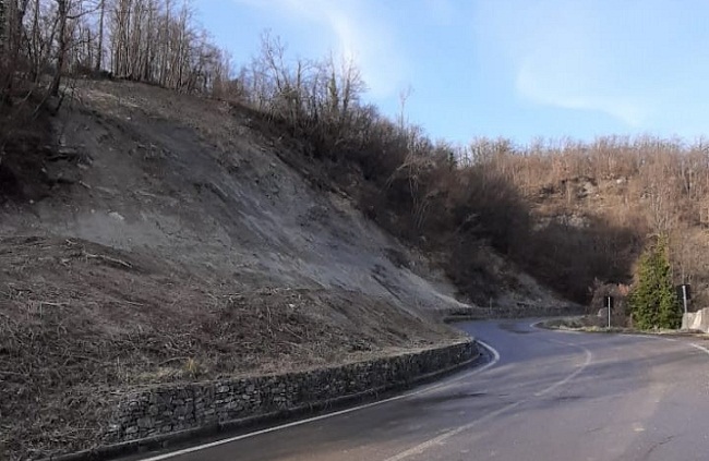 L’intervento ha comportato la messa in sicurezza del versante a monte della strada, con le riprofilatura della scarpata, in un tratto in cui si era riscontrato uno smottamento che aveva determinato la presenza di detriti, massi e altro materiale instabile che incombeva sulla carreggiata.