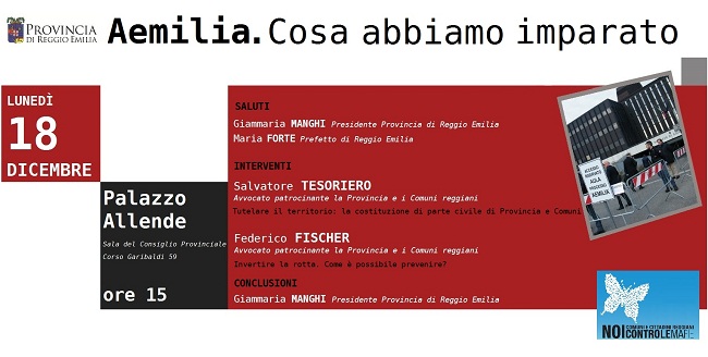REGGIO EMILIA – “Aemilia. Cosa abbiamo imparato” è il titolo dell’importante giornata di riflessione promossa dalla Provincia di Reggio Emilia per domani, lunedì 18 dicembre.