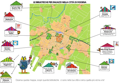 Gli otto Punti di lettura delle biblioteche comunali nei quartieri e nel territorio modenese, grazie ai volontari coprono diverse aree fuori dal centro cittadino svolgendo una funzione importante di incentivo e rafforzamento delle abitudini di lettura specialmente dei più piccoli con il coinvolgimento delle famiglie. Ecco una mappa delle loro sedi con i relativi contatti e orari di apertura.