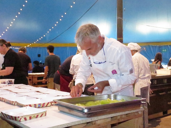 Nella “Piazza dei Sogni”, di fianco al Teatro Galli, Quartopiano Suite Restaurant sarà presente con la sua proposta street food ‘gourmet’. Sei piatti d’autore, due proposte per portata dal primo al dolce, pensate dallo chef Silver Succi che ad Al Mèni sarà presente anche in un’altra veste. Sabato sera, dalle 22.00 alle 23.00, lo chef del Quartopiano sarà infatti protagonista dello Show Cooking nell’Arena Francesca da Rimini, dove realizzerà la sua speciale zuppa estiva a base di bottoni di cipolla brasata, bocconcino di sogliola, cozze pastorizzate, spuma di cocco e acqua di pomodoro e levistico.