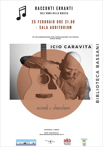 FERRARA – Una serata tra accordi e chiacchiere con protagonista il cantautore Icio Caravita. L’appuntamento è per venerdì 25 febbraio 2022 alle 21 nell’auditorium della biblioteca comunale Bassani di Barco (via Grosoli 42, Ferrara) per un nuovo incontro della rassegna ‘Racconti Erranti sull’onda della musica’, dedicata alla narrazione di viaggi con accompagnamento musicale. Nel corso della serata, organizzata in collaborazione con l’associazione culturale Music Road, Caravita racconterà, partendo dalle sue canzoni e accompagnato dalla chitarra acustica, come fa incontrare le parole alla musica, seguendo il filo di mille suggestioni.