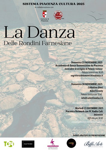 PIACENZA – Si è svolta il 17 novembre presso il Salone Pierluigi di Palazzo Farnese la conferenza stampa di presentazione della rassegna “La Danza delle Rondini Farnesiane” alla presenza dell’assessore alla Cultura del Comune di Piacenza Christian Fiazza, con la partecipazione delle direttrici dell’Accademia di Danza Domenichino di Piacenza Michela Arcelli ed Elisabetta Rossi, Camilla Peretti direttrice organizzativa di CollettivoDieci, Cladia Passaro per Pc Network Radio Cult e Filippo Arcelloni direttore artistico del Teatro Trieste 34.