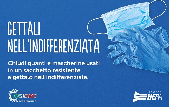 RAVENNA – ‘Gettali nell’indifferenziata’. È questo il titolo della campagna promossa da Hera in questi giorni per informare e sensibilizzare sul corretto smaltimento di guanti e mascherine, il cui utilizzo accompagnerà la vita di tutti nei prossimi mesi.