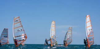 Procede spedito lo svolgimento delle prove con vento medio e forte corrente. Il saluto (a sorpresa) di Cino Ricci