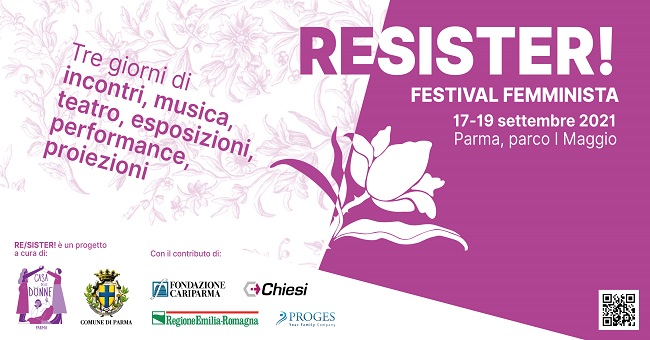 PARMA – RE/SISTER il primo festival femminista di Parma. Promosso dalla Casa delle Donne di Parma con il sostegno e la co-progettazione di Comune di Parma, Regione Emilia Romagna, Chiesi farmaceutici Spa, Fondazione Cariparma, Proges e in collaborazione con Centro antiviolenza Parma (ACAV), Centro studi movimenti Parma, CHEAP street poster art, CIAC Parma– Centro immigrazione Asilo e cooperazione Internazionale, Maschi che si immischiano, Mind for Music, Festinalente Teatro, Teatro medico ipnotico, Vagamonde, W4W, ZonaFranca Teatro.