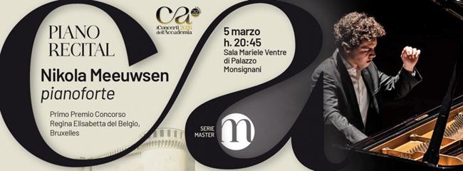 IMOLA (BO) – La rassegna dei Concerti dell’Accademia Serie Master prosegue nel segno dell’eccellenza con un appuntamento straordinario: in programma il recital pianistico del vincitore del primo premio al Concorso Pianistico Internazionale Regina Elisabetta del Belgio di Bruxelles: Nikola Meeuwsen sarà sul palco della Sala Mariele Ventre di Palazzo Monsignani giovedì 5 marzo alle ore 20.45.