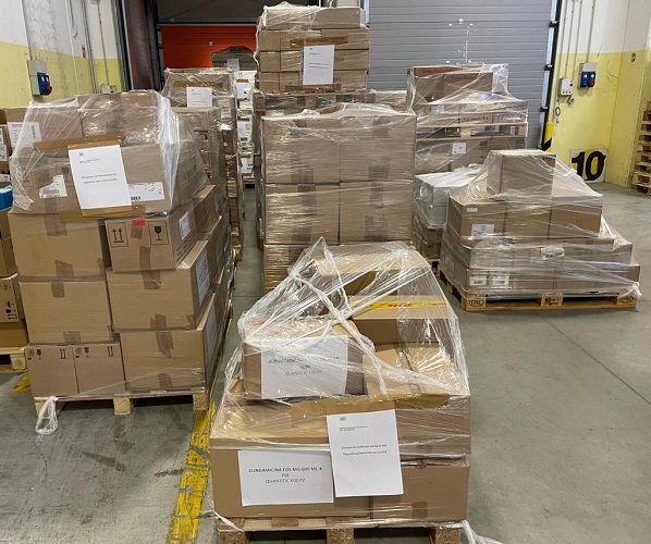 foto del carico di farmaci e materiale sanitario inviato dall’Emilia-Romagna con destinazione Ucraina