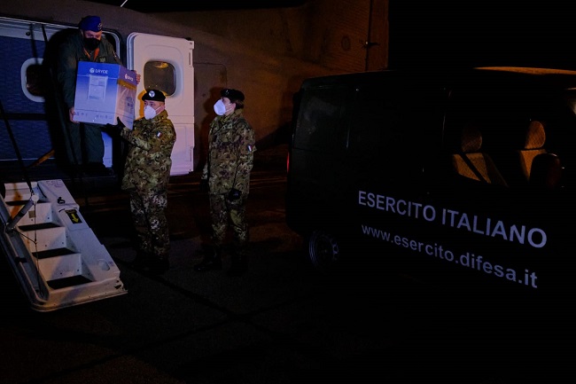 Arrivati nella notte a Bologna con un volo militare partito dalla base di Pratica di Mare (Roma), alle 7.30 le dosi di vaccino – scortate da militari dell’Esercito e agenti delle forze dell’ordine – sono state portate all’Ospedale Bellaria di Bologna (Anatomia Patologica, Padiglione 1) per lo smistamento alle aziende sanitarie. Presente l’assessore regionale alle Politiche per la salute, Raffaele Donini.