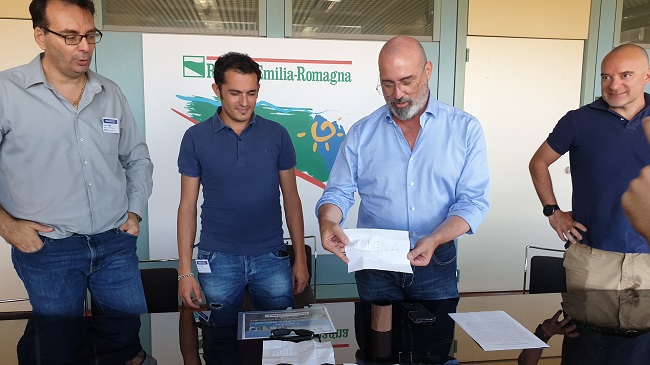foto di gruppo e Bonaccini che sorteggia le squadre per le semifinali