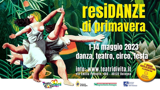 BOLOGNA – La settima edizione delle “resiDANZE di primavera”, nell’anno del trentennale di Teatri di Vita, riserva un ricco programma di 10 spettacoli ed eventi performativi (di cui uno composto a sua volta da 15 creazioni apposite site-specific) in teatro e all’aperto, fra danza, teatro, poetry slam e circo contemporaneo, dopo un’inaugurazione festosa il Primo Maggio con il “microfono aperto” per chiunque si voglia esibire e con il pranzo solidale delle Cucine Popolari. L’appuntamento è a Teatri di Vita (via Emilia Ponente 485, Bologna; tel. 333.4666333; teatridivita.it) e all’aperto nel Parco dei Pini, dall’1 al 14 maggio.