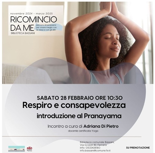 FERRARA – Sarà dedicato alla pratica del Pranayama il nuovo appuntamento, sabato 28 febbraio 2026 alle 10:30, con la rassegna “Ricomincio da me” alla biblioteca comunale Bassani (via Grosoli 42, Barco, Ferrara).
