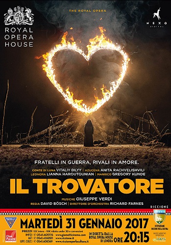RICCIONE (RN) – La stagione del prestigioso teatro londinese Royal Opera House in diretta mondiale nei migliori cinema. ‘Cinema in diretta’ propone 6 balletti e 6 opere che spaziano dal repertorio classico a quello contemporaneo. Martedì 31 gennaio alle ore 20.15 sarà eseguita l’opera verdiana Il Trovatore.