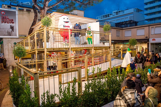 RICCIONE (RN) – Domenica pomeriggio in viale Ceccarini è in programma la festa a firma Kinder Ferrero, una delle aziende partner di Riccione Ice Carpet, grazie a cui è stata possibile la realizzazione della casetta sull’albero di Babbo Natale ideata e costruita da Ecogiardino.