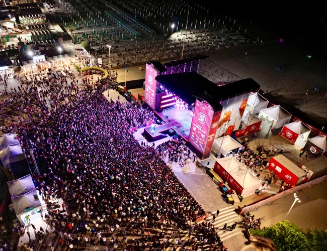 RICCIONE (RN) – È stato uno spettacolo grandioso quello andato in scena ieri sera in piazzale Roma per il terzo appuntamento di Riccione On Stage. Un colpo d’occhio bellissimo con migliaia di persone arrivate di corsa sotto il palco già al tramonto per poter cantare e ballare insieme a Mahmood, Anna e BNKR44, special guest tra i più attesi di questa edizione. Tante le giovanissime in coda già dal pomeriggio per la rapper dei record, da settimane in testa a tutte le classifiche, con dediche di ogni tipo, gli occhi lucidi e le parole a memoria cantate a squarciagola.