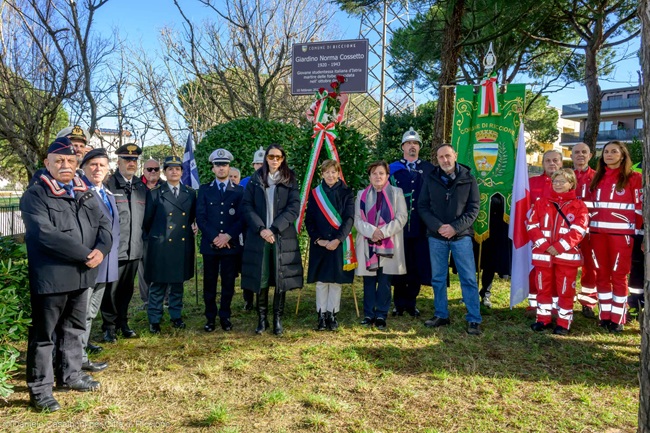 RICCIONE (RN) – Questa mattina, in un clima di profondo raccoglimento, è stato celebrato il Giorno del Ricordo. La sindaca Daniela Angelini, alla presenza delle autorità civili e militari, ha deposto una corona d’alloro nel giardino intitolato a Norma Cossetto .