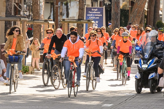 Sempre nel pomeriggio ha preso il via dal piazzale Ceccarini la coloratissima “Women on Bike”, la pedalata al femminile realizzata in collaborazione con la Commissione Pari opportunità del Comune di Riccione. Alla pedalata per le vie della città hanno partecipato numerose donne (una settantina) a bordo di qualsiasi tipo di bicicletta, con magliette e fiocchi di colore arancione, simbolo contro ogni forma di violenza. Ha preso parte alla pedalata come madrina dell’iniziativa Stefania Andriola, volto ormai familiare delle reti Mediaset, e si sono aggiunti anche i grandi campioni Dmitrij Konyšev e Fabiana Luperini.