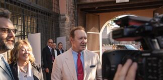 Il premio oscar Kevin Spacey ieri in visita al Fellini Museum