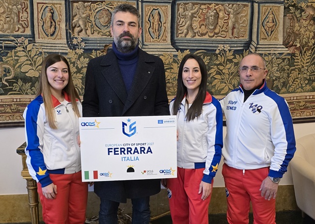 FERRARA – Accolte in Municipio per i risultati ottenuti nel 2025 nel settore Judo della Palestra Ginnastica Ferrara le atlete Martina Cairone, azzurra di Judo Kata, e Alessandra Iavazzo, campionessa di Judo tradizionale. Le judoke, accompagnate per l’occasione dal maestro Antonino Cairone, sono state ricevute dall’Assessore comunale allo Sport nella sala degli Arazzi del Palazzo Municipale di Ferrara. Il riconoscimento è andato alle due portacolori più rappresentative per i traguardi portati a casa nell’anno appena concluso.