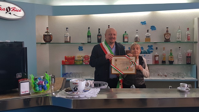 Il Sindaco Drei ha consegnato una pergamena alla Signora Biancarosa Ciani, titolare dello storico Caffè che venne aperto dai suoi genitori
