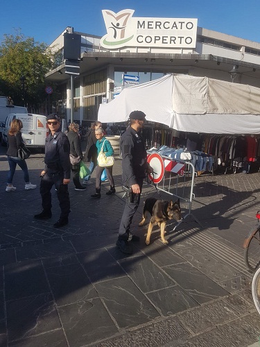 Le unità cinofile della Polizia Locale controllano tutta l’area del mercato