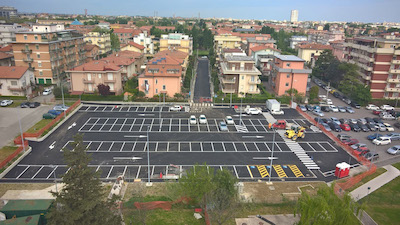 Così come per la grande opera di Piazzale Kennedy, dove all’importante infrastruttura fognaria si accompagnerà un altrettanto rilevante intervento di riqualificazione urbanistica di un’area strategica della città, anche la realizzazione della vasca dell’Ospedale è stata l’occasione per rifunzionalizzare una parte di territorio. E’ stato infatti sistemato il parcheggio sovrastante la struttura di accumulo, che potrà contare così su 125 posti auto non a pagamento, 40 stalli motorini e 3 stalli auto per disabili. Il parcheggio è raggiungibile da via Sirani attraverso le vie Alberizzi Teodochio e G. Stampa.