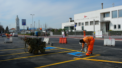 La ditta incaricata d’Anthea, che cura la direzione lavori, ha infatti terminato la nuova segnaletica che riorganizza la sosta dopo che nei giorni scorsi l’intero piazzale è stato riassaltato. Con la riorganizzazione non cambia sostanzialmente il numero degli stalli di sosta che rimangono 38 per le moto, davanti alla sede dell’Associazione nazionale marinai d’Italia, 35 per la sosta a pagamento, 31 liberi, 3 per gli invalidi, 2 destinati alle operazioni di carico-scarico.