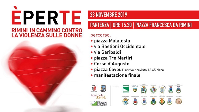 Partirà da Piazza Francesca da Rimini, l’ottava edizione della camminata che attraverserà, come ogni anno, il centro storico. La grande manifestazione di solidarietà, previste nel pomeriggio di sabato 23 novembre, e aperta a tutti i cittadini per ribadire il no ad ogni violenza di genere. “E’ per te. Rimini in cammino contro la violenza sulle donne” è un’occasione importante, che il Comune di Rimini e la Provincia di Rimini, in collaborazione con il Centro antiviolenza del Comune di Rimini, “Rompi il silenzio Onlus”, organizzano per celebrare la Giornata internazionale contro la violenza sulle donne.