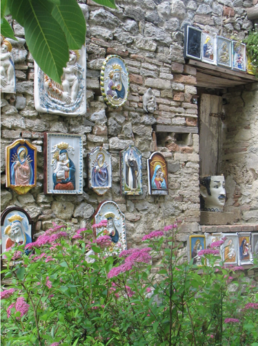 E ancora: Il Giardino pietrificato nella frazione di Bascio, dove alla base di una torre millenaria sono collocati sette tappeti di ceramica, opera eseguita da Giovanni Urbinati, dedicati a sette personaggi storici legati all’antichissima torre. L’angelo coi baffi, l’unico museo al mondo con un quadro solo, dell’artista Luigi Poiaghi ispirato a una poesia di Guerra. Il Santuario dei Pensieri, nel guasto Malatestiano: sette enigmatiche sculture in pietra lì per essere “lette dall’anima”. E poi Il Rifugio delle Madonne abbandonate, collezione che raccoglie le immagini sacre che adornavano le cellette agli incroci delle strade di campagna e La Madonna del rettangolo della neve, nella frazione di Ca’ Romano: una piccola chiesa che offre riparo a una grande opera realizzata dalla ceramista Muki.