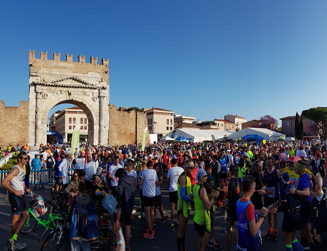 A tagliare per primo il traguardo della maratona all’arco d’Augusto sventolando il tricolore è stato Hajji Mohamed che ha concluso il percorso nel tempo di 02.23.05.