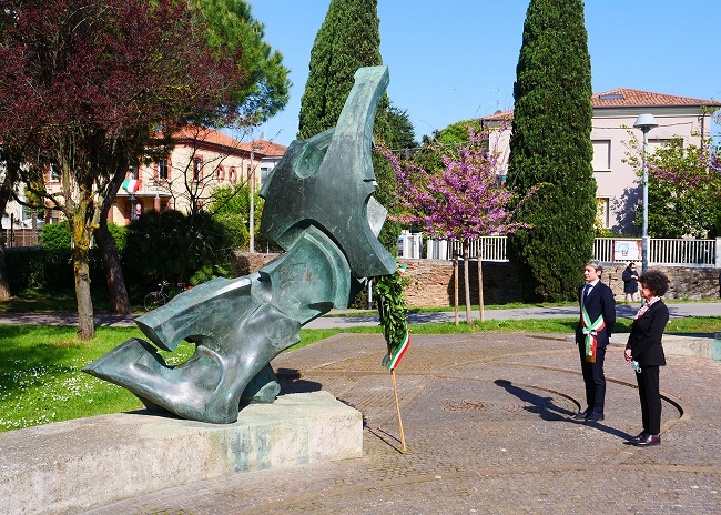 RIMINI – “È il 25 aprile che non avremmo mai voluto perché per la prima volta in 75 anni non ci vede scendere in piazza, riempire insieme le bellissime piazze d’Italia, a onorare persone e a diffondere un messaggio collettivo di libertà. – ha detto il Sindaco di Rimini Andrea Gnassi che col Prefetto Alessandra Camporota questa mattina, a nome della comunità riminese ha reso omaggio, in occasione del 75° anniversario della Liberazione d’Italia, a tutti i caduti della seconda Guerra mondiale e della Resistenza con la deposizione di corone d’alloro prima al Monumento alla Resistenza di parco Cervi dei Caduti e poi al Monumento ai Caduti per la Libertà di piazza Tre Martiri -.”