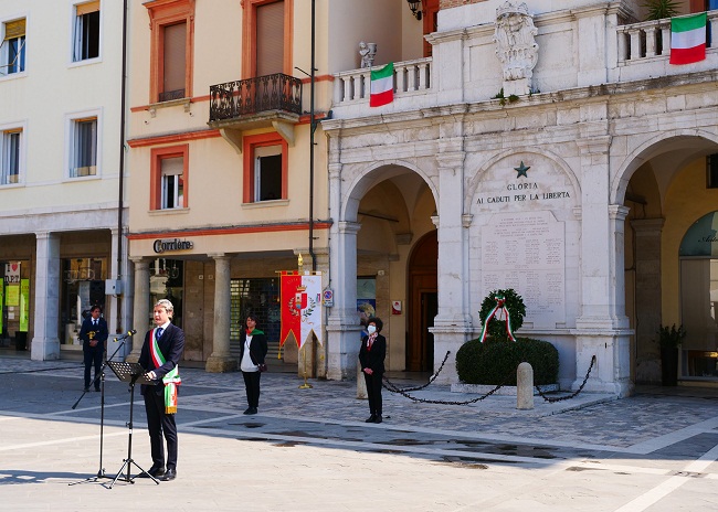 “Un pensiero non può andare che ai partigiani – ha ricordato nel suo intervento Silvia Zoli – ai pochi rimasti,al nostro presidente Valter Vallicelli il partigiano Tabac che oggi per la prima volta dopo 75 anni non ha potuto essere presente qua in piazza. E voglio dire ai partigiani e a chi si è battuto per la libertà che noi non consentiremo a nessuno di rivisitare questa pagina di storia e questa giornata che sarà sempre la giornata della liberazione dal nazismo e dal fascismo.”