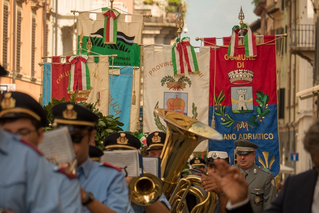 Sono state così deposte a ricordo corone di alloro nella piazza dedicata alle vittime dell’eccidio, in piazza Ferrari e in via Ducale nel corso di una cerimonia aperta dalla banda della Città di Rimini, a cui hanno partecipato i rappresentati delle istituzioni, i rappresentanti dei comuni della provincia di Rimini coi loro gonfaloni, i rappresentanti delle forze armate e delle associazioni partigiane, combattentistiche d’arma con i labari oltre a tanti cittadini riminesi.