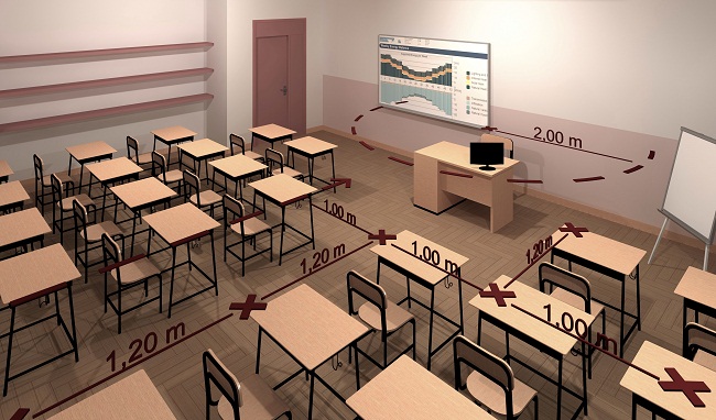 Sono state diverse le Conferenze di Servizio necessarie ad individuare un layout delle aule di tutte le scuole per verificare – in riferimento ai parametri indicati dal Ministero e dal Comitato Tecnico Scientifico – quali accorgimenti strutturali e organizzativi mettere in atto per accogliere in sicurezza gli studenti per ciascun Istituto. Un lavoro importante, che si concluderà martedì prossimo 28 luglio con l’ultimo incontro, che ha anticipato i tempi e le disposizioni giunte poi dal MIUR e dal provveditore Regionale, i quali hanno disposto definitivamente – come parametri ufficiali di sicurezza – la distanza di 1 metro dalla bocca e di 2 metri dal docente al bambino. Dalla prossima settimana partiranno i lavori di adeguamento che sono stati stabiliti, in tutte le scuole. A tale scopo sono state prodotte le planimetrie delle aule di tutte le scuole elementari e medie presenti sul territorio e consegnate ai dirigenti scolastici, come nell’esempio del rendering che mostra il lavoro fatto per ogni aula in cui è previsto 1 metro da bambino a bambino e la distanza di 1,20 mt tra una fila e l’altra che è stata stabilita in maniera precauzionale .