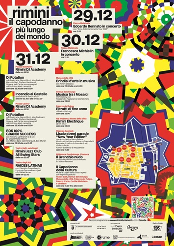 Dopo i due concerti di anteprima, il 31 dicembre si entra nel momento clou dei festeggiamenti del Capodanno più lungo. Una notte non stop con una line up di oltre 30 deejay, 10 feste dal mare al centro storico, 5 musei con le porte spalancate fino alle 3 del mattino e il doppio spettacolo piromusicale che illuminerà Castel Sismondo alle ore 00.30 e alle 02.00, con 8mila effetti di coreografie luminose e 10mila effetti di fuochi d’artificio.