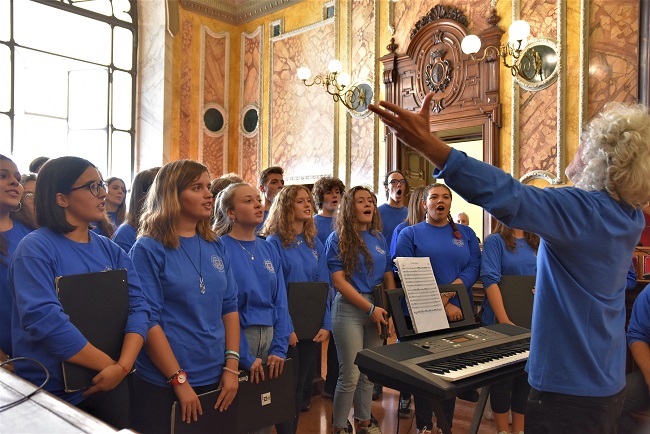 Il Coro del Liceo Marconi, diretto dal Maestro Leonardo Morini ha intonato prima l’inno nazionale tedesco e successivamente un intenso “Fratelli d’Italia”.