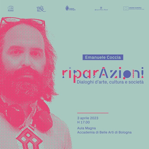 Dal 3 aprile al 23 giugno 2023, l’Accademia di Belle Arti di Bologna propone riparAzioni: dialoghi d’arte, cultura e società, un ciclo di sei incontri a cura di Lucrezia Ercoli, Maura Pozzati ed Emilio Varrà, con grandi protagonisti dell’arte e della cultura internazionale: il filosofo Emanuele Coccia, il collettivo artistico ruangrupa, il regista e drammaturgo teatrale Armando Punzo, l’artista Adelita Husni-Bey, l’illustratrice Nora Krug e la regista Alice Rohrwacher.