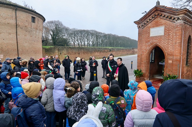 All’incontro sono intervenuti il vicesindaco di Ferrara Alessandro Balboni e il parroco della Parrocchia di Santa Maria del Perpetuo Soccorso Mons. Roberto Solera, oltre a progettisti e tecnici dell’Amministrazione comunale. Dopo la benedizione dell’area e dello storico manufatto religioso adiacente al Torrione di San Giovanni – un capitello mariano dedicato alla Madonna realizzato nel 1925 -, all’interno della sede del Jazz Club il pubblico presente ha potuto seguire le esibizioni musicali degli alunni della scuola primaria “A. Manzoni”, i musici della Contrada di San Giovanni e musicisti del corso Jazz (*) del Conservatorio Frescobaldi di Ferrara.