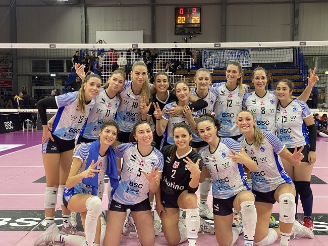 Dopo un avvio equilibrato, Sassuolo cerca subito lo strappo: Pistolesi chiude un’azione infinita, poi Busolini firma il muro del +4 biancoazzurro (10-6). Coach Guadalupi cerca alternative sulla sua panchina con Messaggi e Fontemaggi in campo per Bulaich e Schirò. La BSC però non arresta la sua corsa (14-6, 17-9). Olbia accorcia a -5 (18-13), prima dell’ace di Manfredini che spiana la strada ad un finale tutto sassolese (20-13). Rigore di Civitico e 25-16.