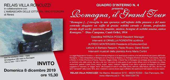 Domenica 8 dicembre 2019 alle 15.30 al Relais Villa Roncuzzi Via Marino Silvestroni 6/10 – Russi