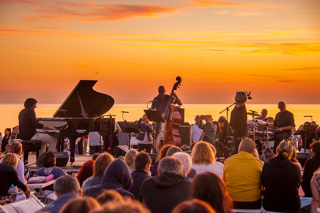 Ad ogni appuntamento con i concerti al sorgere del sole si ripete l’incanto di un esercito poetico di persone di ogni età che, infagottato per le temperature fresche del mattino, marcia nella stessa direzione, la spiaggia che ospita il doppio spettacolo, quello musicale e quello del sole rosso che nasce dal mare e lo incendia di mille colori.