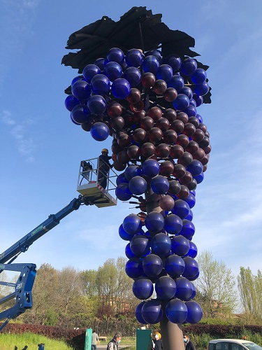 L’opera, donata nel 2006 dal Consorzio, con il sostegno della Camera di Commercio, al Comune di Modena, è alta 12 metri per un totale di 240 chicchi di diverso diametro in vetro di Murano, soffiate una a una fino a uno spessore di un centimetro.