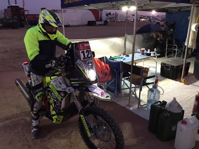 Per quanto riguarda la KTM 450 rally, si ritiene pienamente soddisfatto, risponde benissimo soprattutto a livello ammortizzatori, è maneggevole nella percorrenza e ha un ottimo motore, ovviamente il suo peso di 170 kg diventa impegnativo quando sulle dune c’è la necessità di metter giù il piede, già offeso nella caduta della tappa precedente.